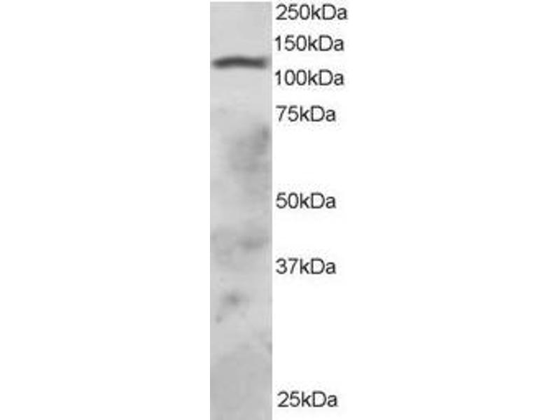 Western Blot: Approx 125 kDa band observed in lysates of cell line JurkatT(calculated MW of 120 kDa according to AAH12077.1). Recommended concentration: 0.5-1.5 μg/mL.