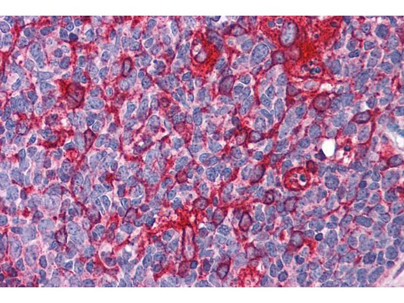 Immunohistochemistry: Paraffin embedded Human Tonsil and Small Intestine. Recommended concentration: 3.75 μg/mL.