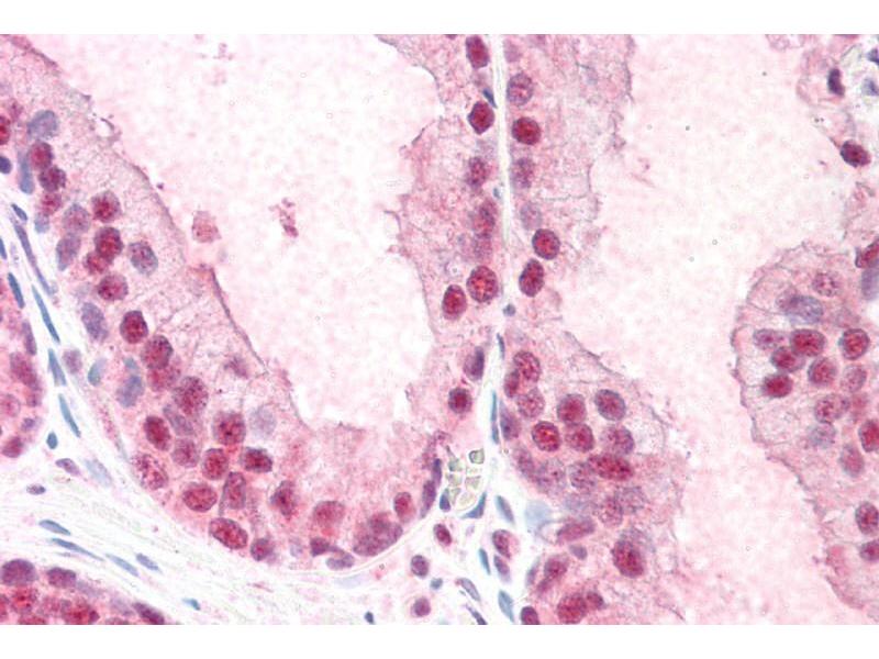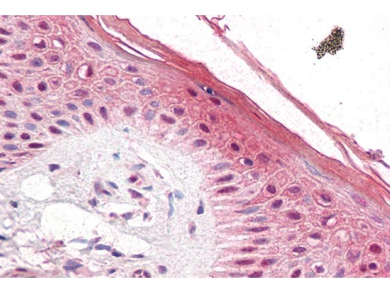 Immunohistochemistry: Paraffin embedded Human Prostate and Skin. Recommended concentration: 5 μg/mL.