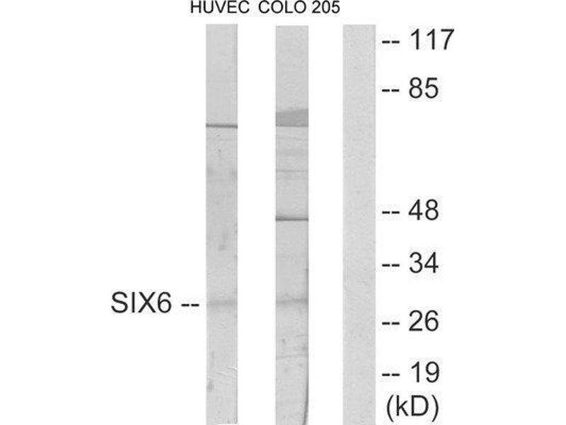 - The antiserum was produced against synthesized peptide derived from internal of human SIX6.