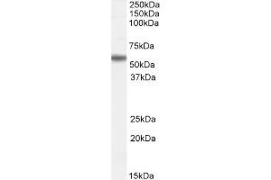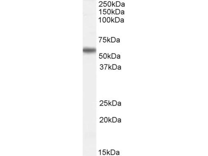 Western Blot: Approx 55 kDa band observed in Human Testis and Lung lysates and approx. 50 kDa in nuclear lysates of cell lines HepG2 and Jurkat (predicted MW of 56 kDa according to NP_003949.1 and 50.8 kDa according to NP_898901.1 ). Recommended concentrati