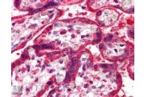 Immunohistochemistry: In paraffin embedded Human Placenta shows strong staining of cytoplasm in syncytiotrophoblasts. Recommended concentration, 5-10 μg/mL.