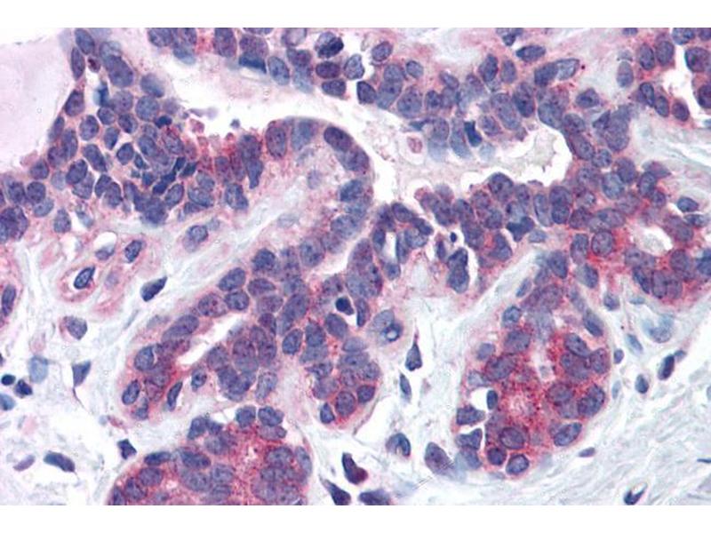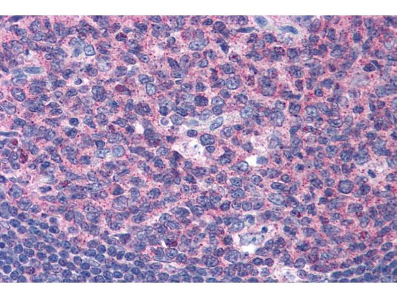 Immunohistochemistry: Paraffin embedded Human Placenta, Tonsil and Breast. Recommended concentration: 3.75 μg/mL.