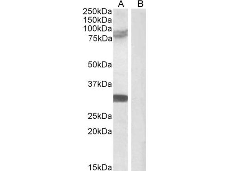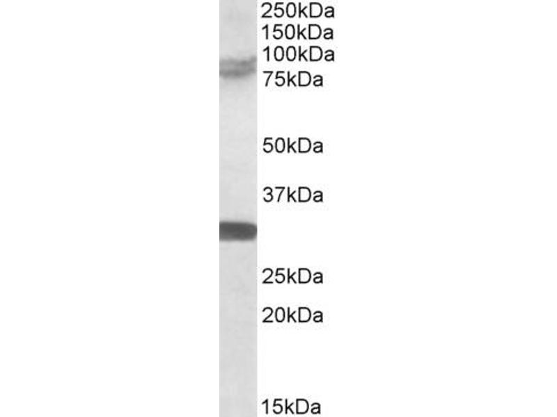 Western Blot: Approx 75-85 kDa band observed in Rat Brain lysates (calculated MW of 83.3 according to Rat NP_001102022.1). An additional band of unknown identity was also consistently observed at 30 kDa. This band was successfully blocked by incubation wi