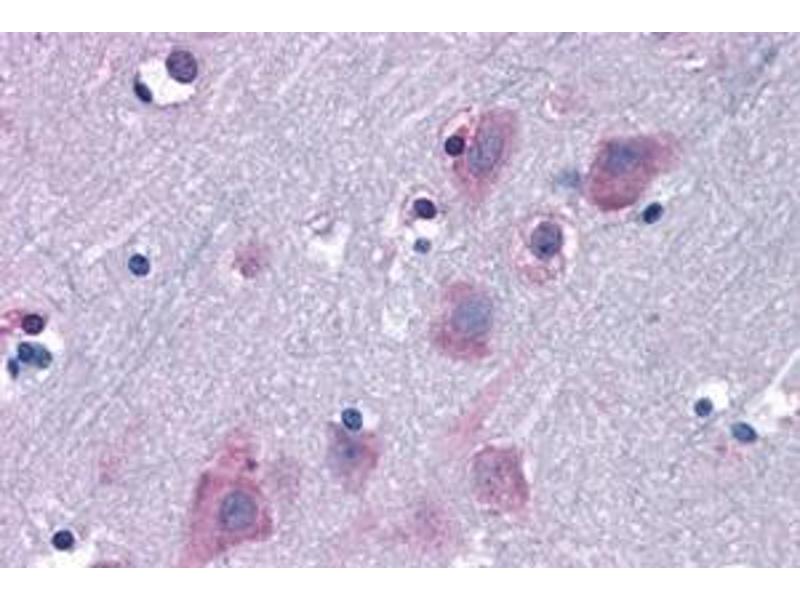 Immunohistochemistry: In paraffin embedded Human Brain (Cortex) shows cytoplasm stainning in neuronal cell bodies. Recommended concentration: 6-12 μg/mL.