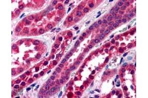 Immunohistochemistry: In paraffin embedded Human Kidney shows cytoplasm staining of PCT and DCT cells Recommended concentration, 3-5 μg/mL.