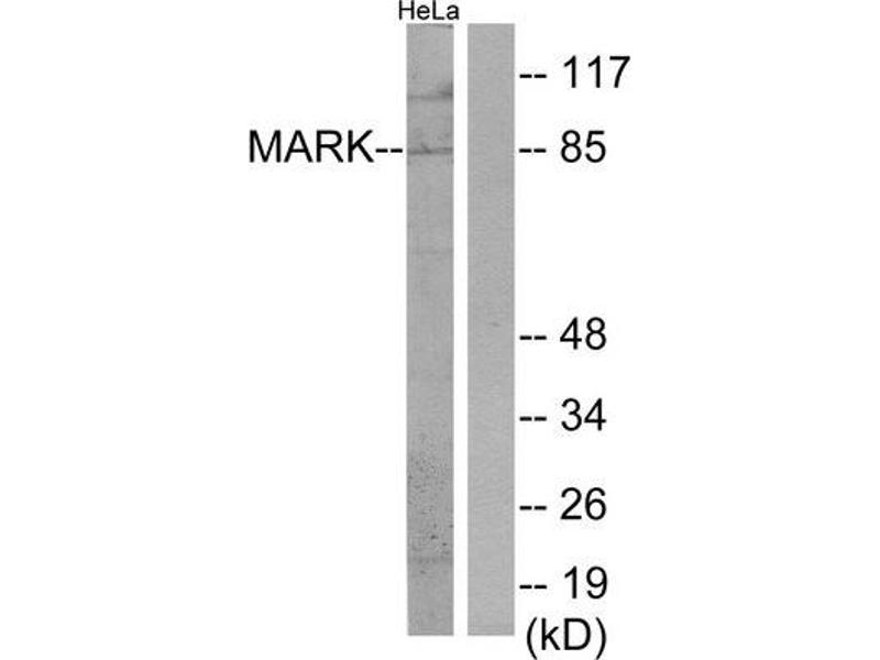 - The antiserum was produced against synthesized peptide derived from internal of human MARK.