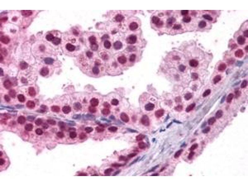Immunohistochemistry: In paraffin embedded Human Prostate shows nuclear staining in the secretory cells of the gland. Recommended concentration: 4-8 μg/mL.
