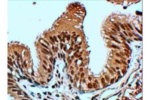 Immunohistochemistry: In paraffin embedded Human Lung shows staining of epithelial cells in the bronchioles and alveoli. Recommended concentration: 4-6 μg/mL.
