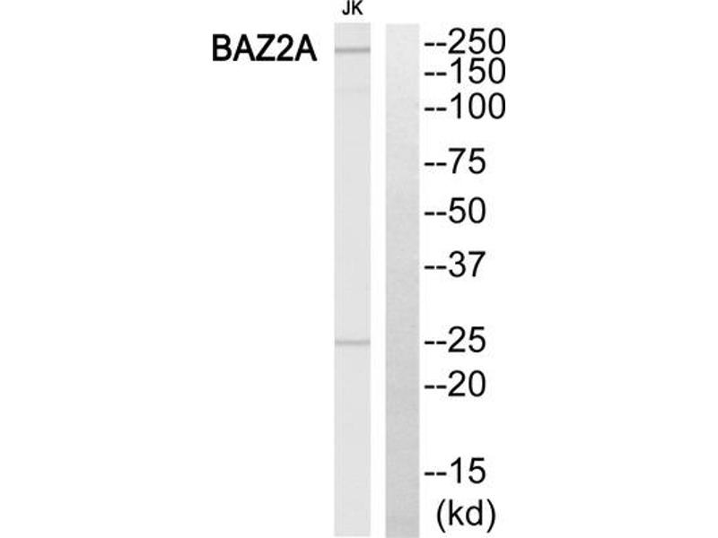The antiserum was produced against synthesized peptide derived from internal of human BAZ2A.