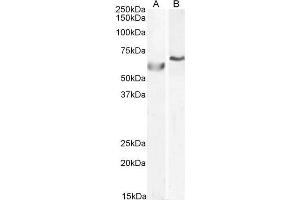 Western Blot: Approx 60 kDa band observed in cell lysates of A549 and approx 60-70 kDa in cell lysates of HepG2 (calculated MW of 63.5 kDa according to Human NP_037406.1). Recommended concentration: 0.5-1 μg/mL.
