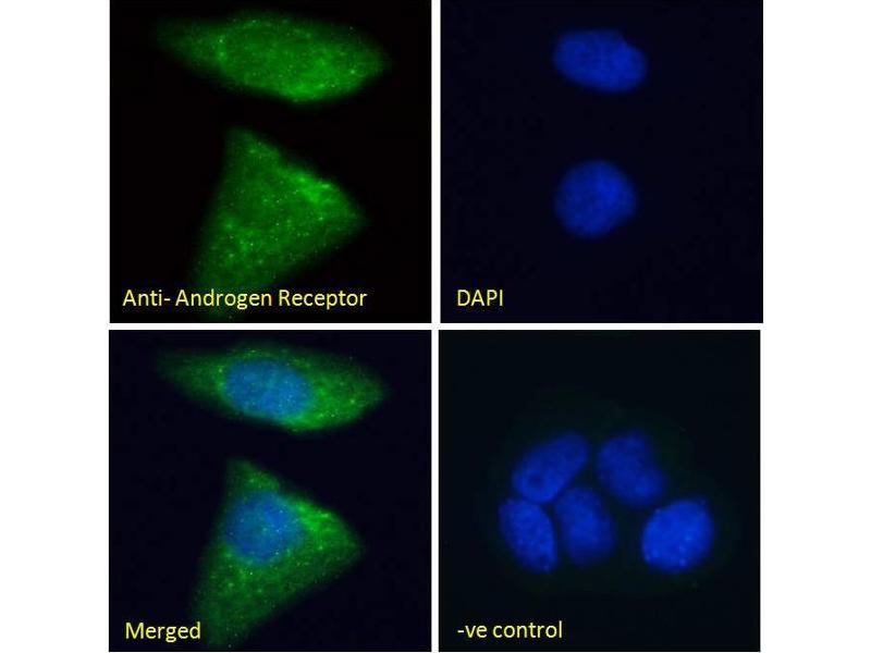 Chromatin Immunoprecipitation: A six-fold increased presence of the FKBP5 locus observed when comparing the precipitations using EB06441 with non-specific goat IgG to bring down Androgen Receptor in a chromatin lysate from DHT-stimulated HEC50 cells.