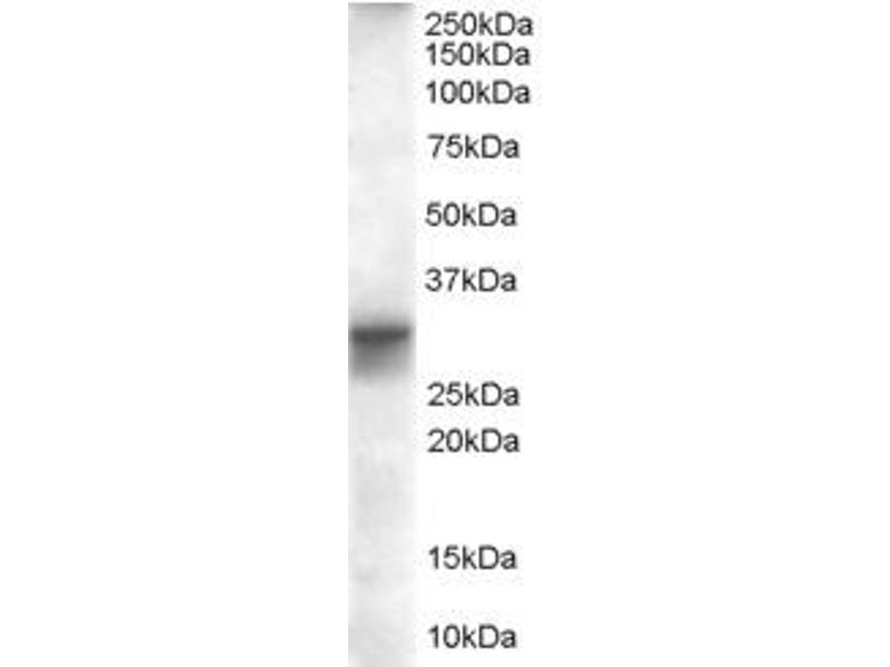 Western Blot: Approx 30 kDa band observed in Human Heart lysates is consistent with literature (PMID:10480922, calculated MW of 36.3 kDa according to AAC72886). Recommended concentration: 0.01-0.1 μg/mL.