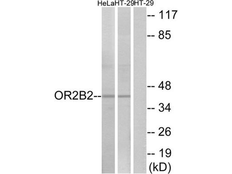 - The antiserum was produced against synthesized peptide derived from internal of human OR2B2.