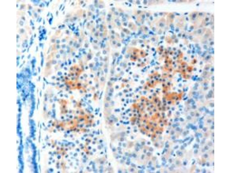 Immunohistochemistry: In paraffin embedded Human Liver shows weak cytoplasm staining in some hepatocytes. Recommended concentration: 2-4 μg/mL.