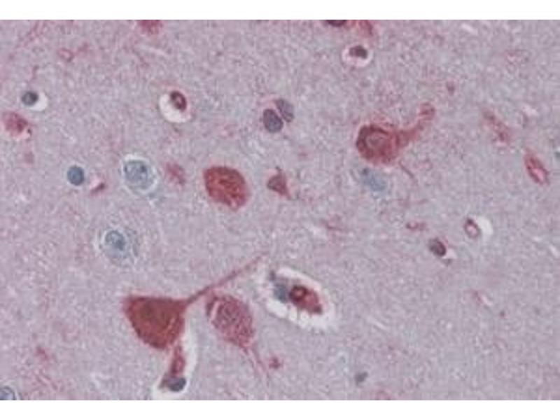 Immunohistochemistry: In paraffin embedded Human Brain Cortex shows staining of neuronal cell bodies. Recommended concentration: 3-6 μg/mL. Paraffin embedded Human Heart. Recommended concentration: 3.75 μg/mL.