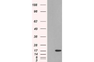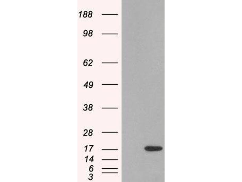 Western Blot: Approx 16 kDa band observed in Human Lymph Node lysates (calculated MW of 14.2 kDa according to NP_002342.1). In transfected HEK293 transiently expressing SH2D1A a band of approx. 17 kDa is observed. This band is not observed in the non-transf