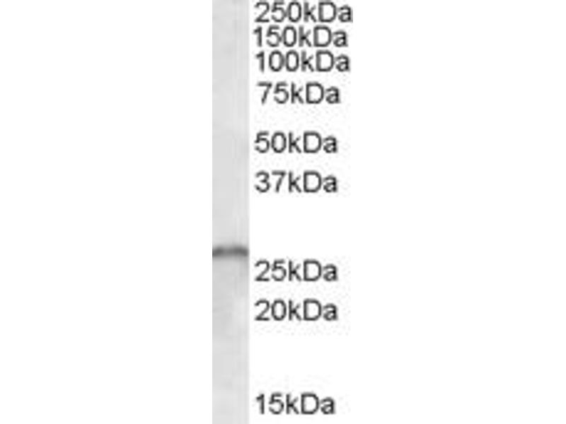 Western Blot: Approx 26 kDa band observed in Human Brain (Cerebellum) lysates (calculated MW of 28.5 kDa according to NP_075012.1 and NP_075014.1). Recommended concentration: 0.3-1 μg/mL.