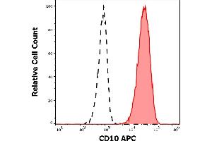 Membrane metalloendopeptidase,CD10 (neutral endopeptidase –, NEP, common acute lymphocytic leukemia antigen –, CALLA, membrane metallo-endopeptidase –, MME, enkefalinase) is a 100- kDa cell surface zinc metalloprotease, cleaving peptide bonds on the N-terminus of hydrophobic amino acids and inactivating multiple physiologically active peptids. CD10 is expressed on various normal cell types, including lymphoid precursor cells, germinal center B lymhocytes, and some epithelial cells, and its expression level serves as a marker for diagnostics of many carcinomas. CD10 is also a differentiation antigen for early B-lymphoid progenitors in the B-cell differentiation pathway and has a key role in regulation of growth, differentiation and signal transduction of many cellular systems.,CALLA, Neprilysin, Neutral endopeptidase, Enkephalinase, Atriopeptidase, MME