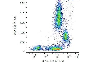 Flow cytometry: The reagent is designed for analysis of human blood cells using 20 μL reagent / 100 μL of whole blood or 106 cells in a suspension. The content of a vial (2 ml) is sufficient for 100 tests.