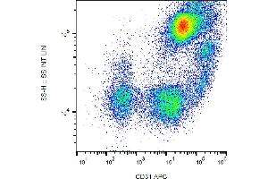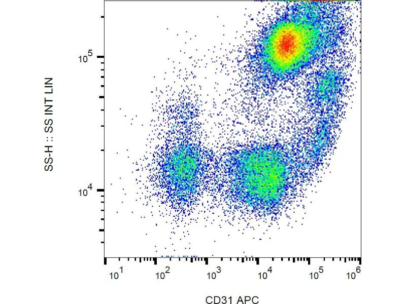 The antibody MEM-05 reacts with an extracellular epitope of CD31 (PECAM-1), a 130-140 kDa type I transmembrane glycoprotein expressed on monocytes, platelets, granulocytes, endothelial cells and stem cells of the myeloid lineage.