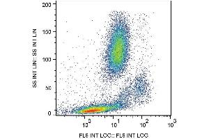 Flow cytometry: The reagent is designed for analysis of human blood cells using 10 μL reagent / 100 μL of whole blood or 106 cells in a suspension. The content of a vial (1 ml) is sufficient for 100 tests.