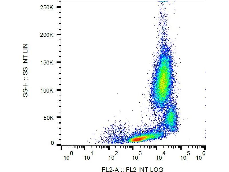 Purified antibody is conjugated with R-phycoerythrin (PE) under optimum conditions. Unconjugated antibody and free fluorochrome are removed by size-exclusion chromatography.