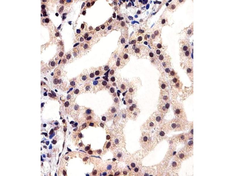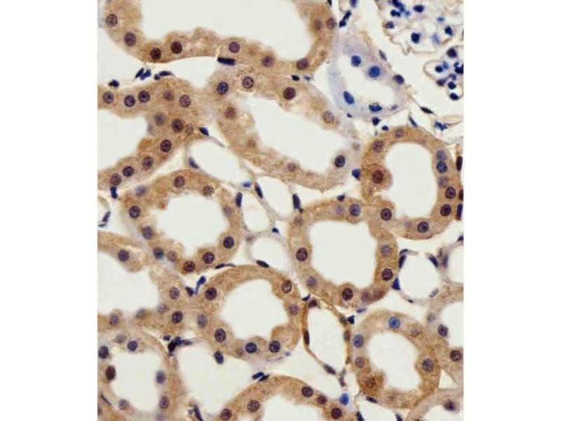 This CSNK2A1 antibody is generated from a rabbit immunized with a KLH conjugated synthetic peptide between 250-284 amino acids from the Central region of human CSNK2A1.