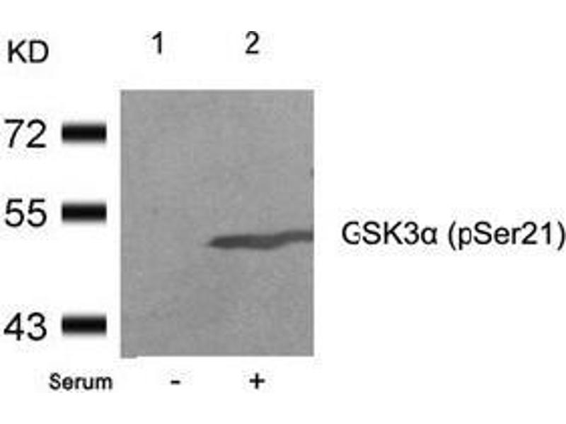 Glycogen synthase kinase 3 alpha belongs to the Ser/Thr family of protein kinases, Cdc2/cdkx subfamily, GSK3 subsubfamily. It is implicated in the hormonal control of several regulatory proteins including glycogen synthase, myb, and the transcription factor c jun. GSK3 phosphorylates glycogen synthase and thereby inactivates it. Insulin stimulates the dephosphorylation of glycogen synthase at the sites phosphorylated by GSK3 and subsequently inhibits GSK3 acutely leading to the stimulation of glycogen synthesis. GSK3 signaling is performed by two isoforms, GSK3 alpha and GSK3 beta. The two isoforms share 97 % sequence similarity within their catalytic domains. GSK3 has also been shown to play a role in protein synthesis, cell adhesion, cell proliferation, cell differentiation, microtubule dynamics and cell motility.Synonyms: Factor A, GSK-3 alpha, GSK3A, Glycogen synthase kinase-3 alpha