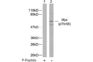 The antiserum was produced against synthesized phosphopeptide derived from human Myc around the phosphorylation site of threonine 58 (L-P-TP-P-P).