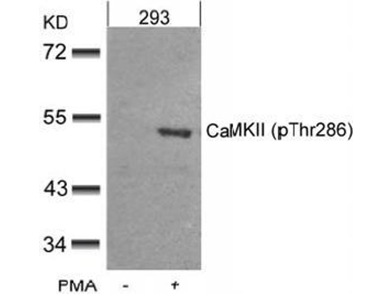 This antibody detects endogenous levels of CaMKII only when phosphorylated at Threonine 286.