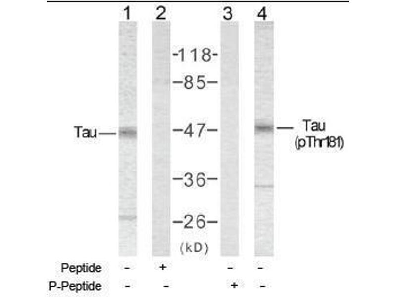 - The antiserum was produced against synthesized non-phosphopeptide derived from human Tau around the phosphorylation site of threonine 181 (P-K-TP-P-P).