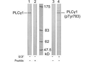 - The antiserum was produced against synthesized non-phosphopeptide derived from human PLCgamma1 around the phosphorylation site of tyrosine 783 (G-F-Yp-V-E).