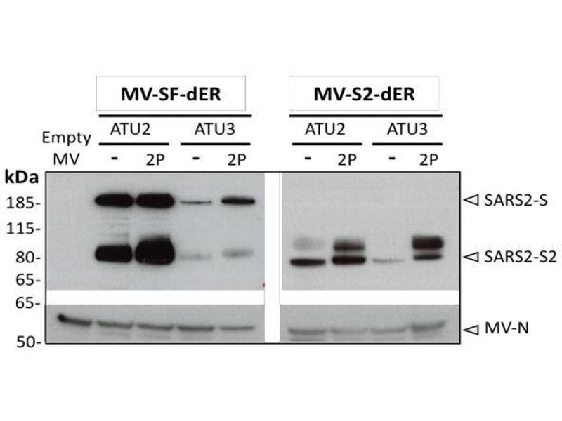 - Full length Spike protein transfected into UM92 cells was used as a positive control and an approximate 139 kD band was observed.
