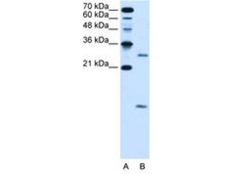 Synthetic peptide from N-Terminus of human VMA21 (Q3ZAQ7, NP_001017980). Percent identity by BLAST analysis: Human, Chimpanzee, Orangutan, Gibbon, Monkey (100%), Marmoset, Mouse, Rat, Rabbit (92%), Bovine, Pig (91%), Hamster, Elephant, Panda, Dog (85%).