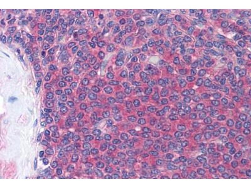 Usage: Immunohistochemistry: This antibody was validated for use in immunohistochemistry on a panel of 21 formalin-fixed, paraffin-embedded (FFPE) human tissues after heat induced antigen retrieval in pH 6.0 citrate buffer. After incubation with the primary antibody, slides were incubated with biotinylated secondary antibody, followed by alkaline phosphatase-streptavidin and chromogen. The stained slides were evaluated by a pathologist to confirm staining specificity. The optimal working concentration for this antibody was determined to be 15 μg/mL. -