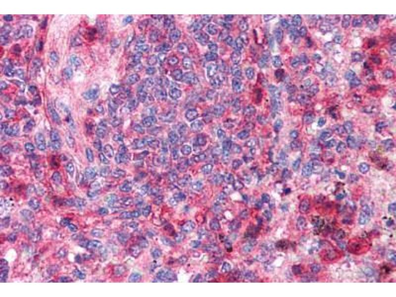 Usage: Immunohistochemistry: This antibody was validated for use in immunohistochemistry on a panel of 21 formalin-fixed, paraffin-embedded (FFPE) human tissues after heat induced antigen retrieval in pH 6.0 citrate buffer. After incubation with the primary antibody, slides were incubated with biotinylated secondary antibody, followed by alkaline phosphatase-streptavidin and chromogen. The stained slides were evaluated by a pathologist to confirm staining specificity. The optimal working concentration for this antibody was determined to be 2.5 μg/mL. -