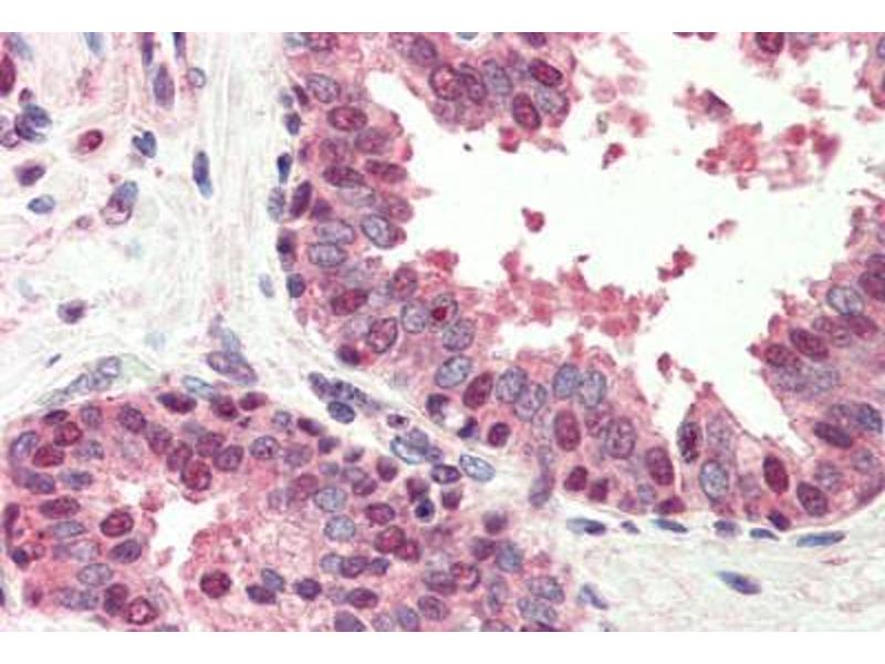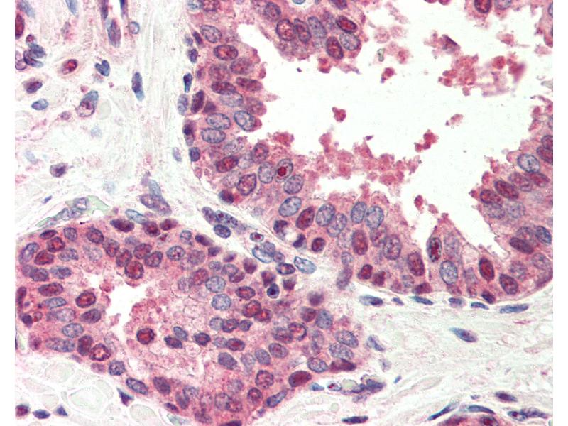 Usage: Immunohistochemistry: This antibody was validated for use in immunohistochemistry on a panel of 21 formalin-fixed, paraffin-embedded (FFPE) human tissues after heat induced antigen retrieval in pH 6.0 citrate buffer. After incubation with the primary antibody, slides were incubated with biotinylated secondary antibody, followed by alkaline phosphatase-streptavidin and chromogen. The stained slides were evaluated by a pathologist to confirm staining specificity. The optimal working concentration for this antibody was determined to be 5 μg/mL. -