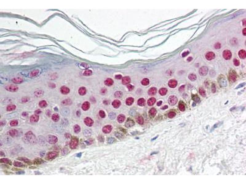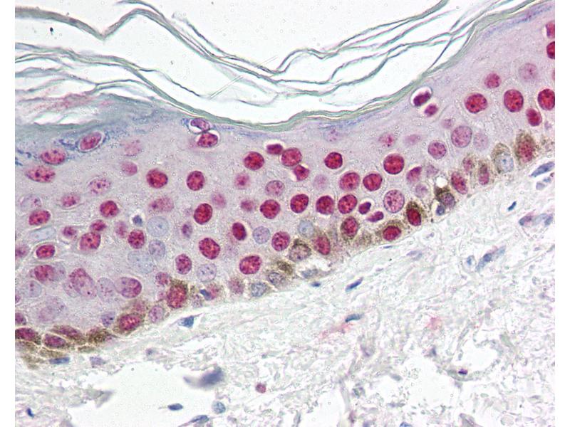 Usage: Immunohistochemistry: This antibody was validated for use in immunohistochemistry on a panel of 21 formalin-fixed, paraffin-embedded (FFPE) human tissues after heat induced antigen retrieval in pH 6.0 citrate buffer. After incubation with the primary antibody, slides were incubated with biotinylated secondary antibody, followed by alkaline phosphatase-streptavidin and chromogen. The stained slides were evaluated by a pathologist to confirm staining specificity. The optimal working concentration for this antibody was determined to be 5 μg/mL. -