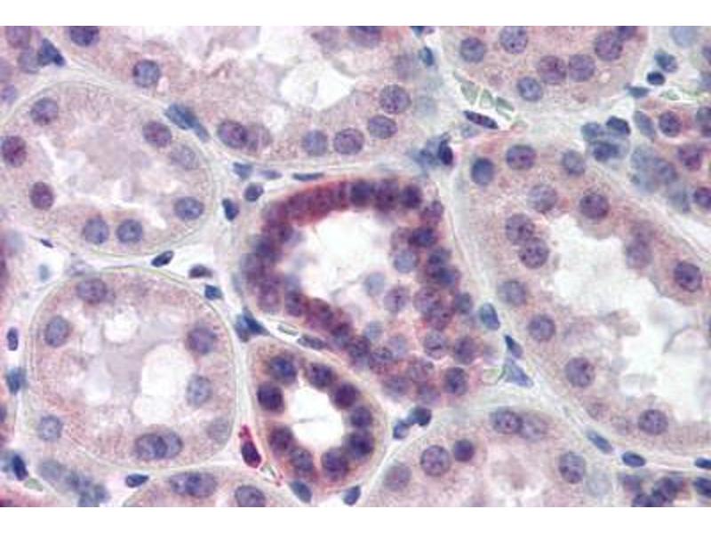 Usage: Immunohistochemistry: This antibody was validated for use in immunohistochemistry on a panel of 21 formalin-fixed, paraffin-embedded (FFPE) human tissues after heat induced antigen retrieval in pH 6.0 citrate buffer. After incubation with the primary antibody, slides were incubated with biotinylated secondary antibody, followed by alkaline phosphatase-streptavidin and chromogen. The stained slides were evaluated by a pathologist to confirm staining specificity. The optimal working concentration for this antibody was determined to be 1:500. -