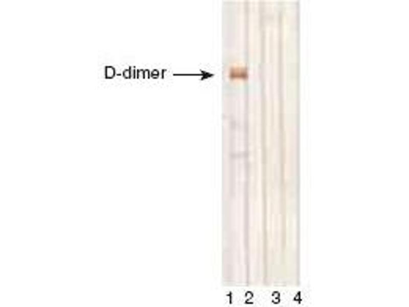 - Recognizes Human D-dimer, a specific degradation product of cross-linked fibrin, and high molecular weight fibrin degradation products. No cross-reaction with D-monomer.