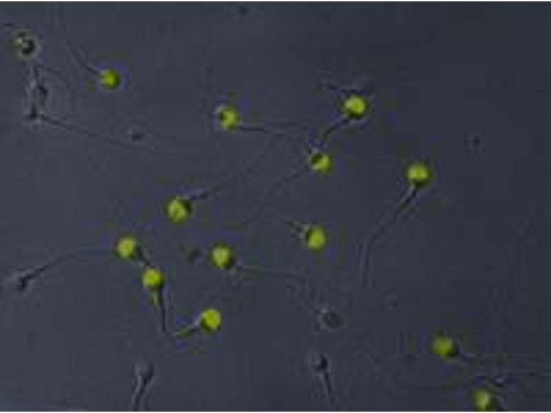 Flow Cytometry. Western Blotting. Immunocytochemistry: 10 μg/mL, Staining technique: Membrane permeabilization(acetone) is essential. Application note: The antibody Hs-14 is designed for quantitativeimmunofluorescence analysis of pathological sperms (excellent tool for laboratories ofassisted reproduction when optimal method of fertilization is sought). Other applications not tested. Optimal dilutions are dependent on conditions and should be determined by the user.