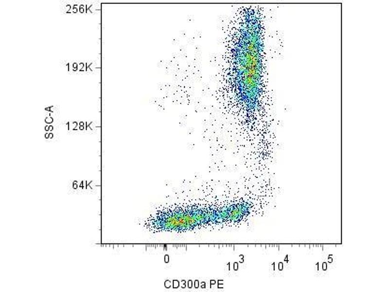 The antibody reacts with CD300a, a 60 kDa leukocyte transmembrane glycoprotein expressed on human granulocytes, monocytes, neutrophils, NK cells, mast cells and dendritic cells, 25 % of circulating T cells and 15 % of circulating B cells.