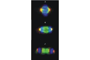 - The gamma-tubulin (TUBG1, relative molecular weight about 48 kDa) is a minor member of tubulin family (less that 0.01 % of tubulin dimer). The gamma-tubulin ring structures, however, serve to provide structural primer for initiation of microtubular nucleation and growth, thereby being crutial for microtubule-based cellular processes, above all for mitotic spindle formation. In animal cells, a center of microtubule organization is the centrosome composed of a pair of cylindrical centrioles surrounded by fibrous pericentriolar material containing gamma-tubulin. Formation of the mitotic spindle is preceded by duplication of centrosome during S phase. Before mitosis, both centrosomes increase their microtubule nucleation capacity and form two microtuble asters that are pushed apart from each other by the forces of motor proteins associated at the microtubule surface.Synonyms: GCP-1, Gamma-1-tubulin, Gamma-tubulin complex component 1, Tubulin gamma-1 chain