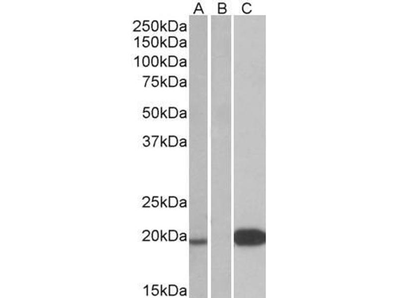 Western Blot: In transfected HEK293 transiently expressing full-length Human UCN3 (myc and DYKDDDDK tagged), a band of approx. 19 kDa was observed. No bands were observed in mock-transfected HEK293 and the same band was observed using anti-DYKDDDDK tag an