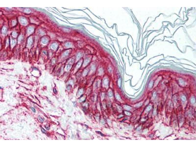 Usage: Immunohistochemistry: This antibody was validated for use in immunohistochemistry on a panel of 21 formalin-fixed, paraffin-embedded (FFPE) human tissues after heat induced antigen retrieval in pH 6.0 citrate buffer. After incubation with the primary antibody, slides were incubated with biotinylated secondary antibody, followed by alkaline phosphatase-streptavidin and chromogen. The stained slides were evaluated by a pathologist to confirm staining specificity. The optimal working concentration for this antibody was determined to be 10 μg/mL. -