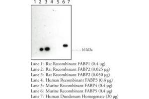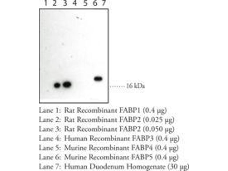 Does not cross-react with FABP1, FABP3, FABP4 and FABP5.