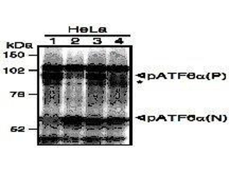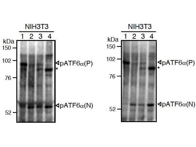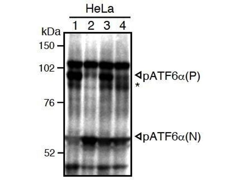 ATF6 (activating transcription factor 6) is an endoplasmic reticulum (ER) membrane-bound transcription factor activated in response to ER stress. When unfolded proteins accumulate in the ER, ATF6 is cleaved by regulated intramembrane proteolysis. The resulting amino-terminal fragment translocates to the nucleus and activates transcription by binding to ER stress-response elements present in the promoter regions of ER stress-inducible genes including those encoding ER chaperones and components of ER-associated degradation. The mammalian ATF6 family consists of two closely related homologs, ATF6alpha and ATF6beta. ATF6alpha but not ATF6beta plays a pivotal role in transcriptional control. The monoclonal antibody was characterized in the laboratory of Professor Kazutoshi Mori of Kyoto University.