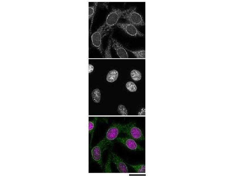 Properties: When injected into the cytoplasm, this antibody accumulates into the nuclear pores of HeLa cells and inhibits nuclear localization of endogenous Ran.