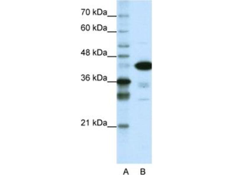 TARDBP antibody can be used for detection of TARDBP by ELISA at 1:1562500. TARDBP antibody can be used for detection of TARDBP by western blot at 1.25 μg/mL, and HRP conjugated secondary antibody should be diluted 1:50,000 - 100,000.